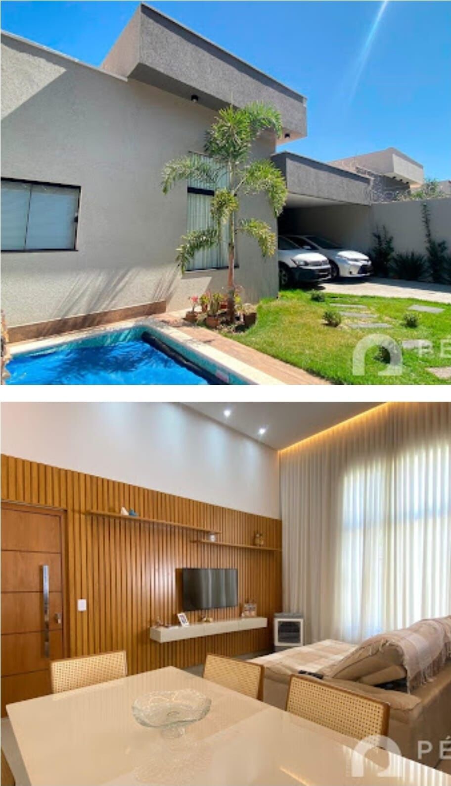 Casa com três quartos, sendo uma suíte, sala ampla com pé direito, cozinha americana, banheiro social, despensa e área de serviço. Armários na cozinha. cozinha conta com coifa, forno elétrico e fogão. Duas vagas de garagem. quintal amplo com piscina com luz de LED e cascata e churrasqueira. Localizado em frente ao bosque Itaipu e próximo ao Portal Sul Shopping.